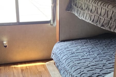 Roomy, family friendly camper with 3 smart TVs! Has a private Queen bedroom in front and private back bunk room. 3 slide outs total and an outdoor kitchen.