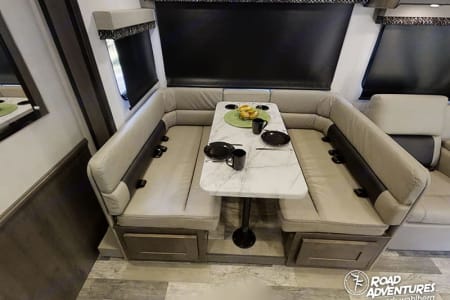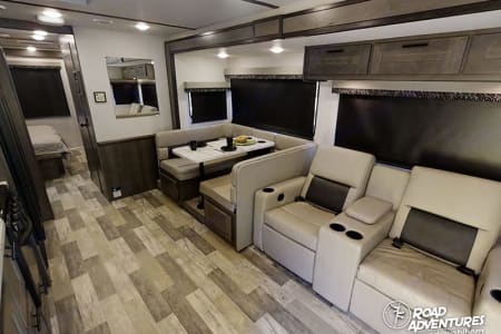 This beautiful 2025 Class A motor home is a perfect crossover for people who want the luxuries of the larger unit but prefer ease in maneuverability and driving comfort. This motor home boasts a king-size bed in the master bedroom, two large slide outs that offer very spacious living, a 71" Dream Dinette that and two reclining theater seats. This unit also has a loft bed for additional sleeping making this unit able to sleep up to 8.