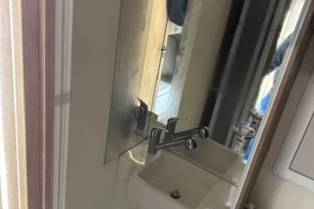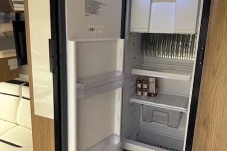It has a full kitchen with a tall fridge freezer, perfect size for a long trip.