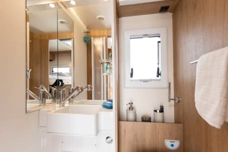 The heating and hot water is provided through the Truma 6E combi boiler. Very quick to heat up.