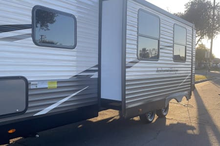 BRAND NEW 2024 SPACIOUS TRAVEL TRAILER WITH BUNKS (DOUBLES)SLEEPS UP TO 10 PEOPLE BEAUTIFUL ON THE INSIDE AS WELL AS THE OUTSIDE EVEN HAS A OUTDOOR MINI KITCHEN PERFECT FOR ANY FAMILY LARGE OR SMALL LOTS OF ROOM FULLY LOADED