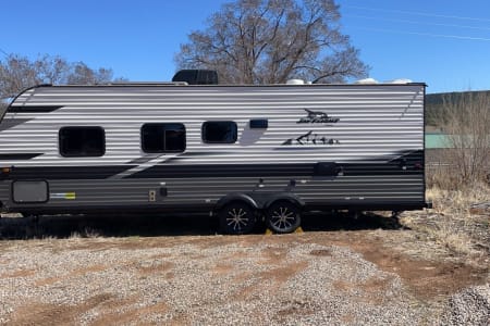 Enjoy the comfort of home wherever your adventure takes you in our 2023 Jayco Jay Flight 29’ travel trailer. Tow ready setup with weight distribution hitch available for a smooth and confident towing experience. This spacious, like new camper is perfect for family getaways, weekend escapes, and exploring the beautiful outdoors of NM and beyond. Designed with comfort and functionality in mind, this trailer comfortably sleeps up to 8 and offers plenty of space to relax after a day of adventure.