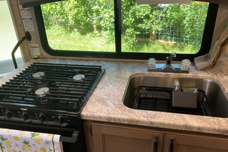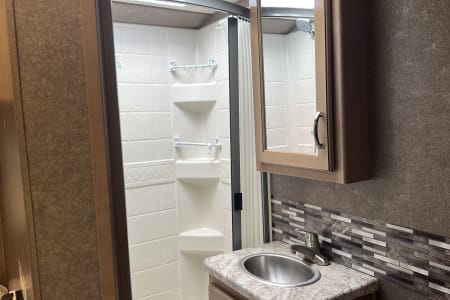 Despite all the at-home features this class C RV is relatively easy to maneuver due to it's smaller length. You have ample storage underneath so that everyone can bring their shoes and makeup!