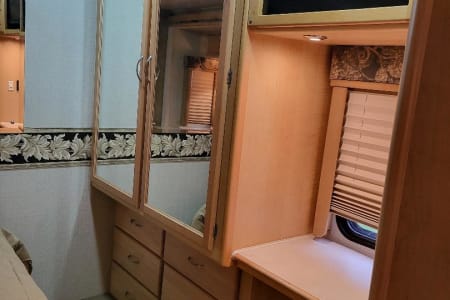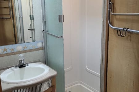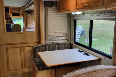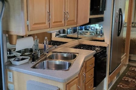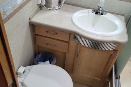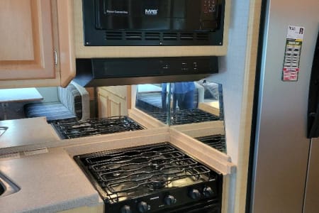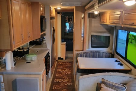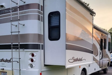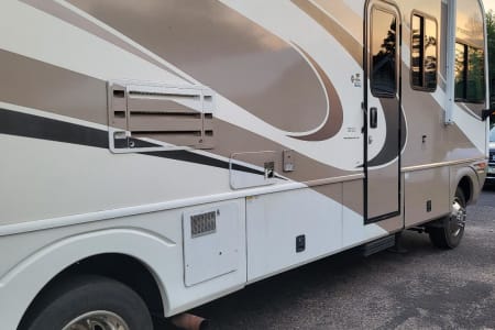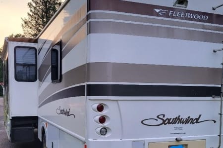 This 6 person RV rental comes with a full-size refrigerator, gas stove, 2 AC Units, 5500 Gas Generator giving you power wherever you land. Fully stocked with kitchen ware and linens. Outside you have three awnings and flat top gas grill. Plenty of storage and towing capability. RV Rental delivery and Set-up available.