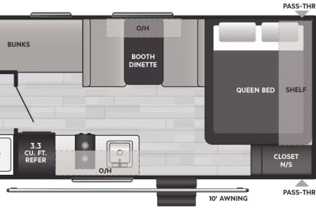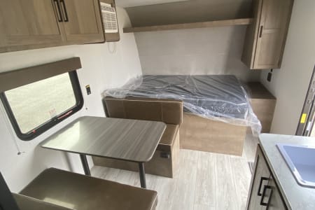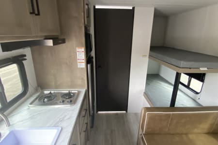 If you’re looking for an easy to use, fully equiped base camp, this brand new beauty is your best option. This plug & play home on wheels features an open bunkhouse floorplan with the capability to sleep up to five. Perfect for young familys or a small group of friends looking for a relaxing get-a-way. Open the door to a world of possibilities in this convenient lightweight package, making it easier than ever to embark on unforgettable journeys. This single-axle wonder is ready to go anywhere the road leads and can be towed by a wide veriety of vehicles.