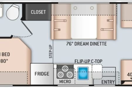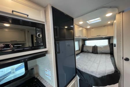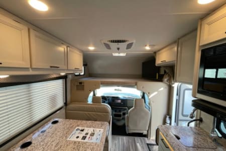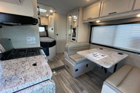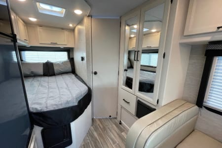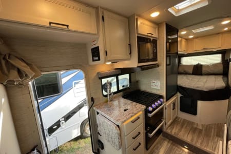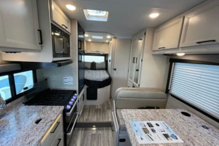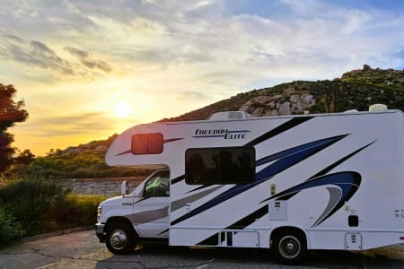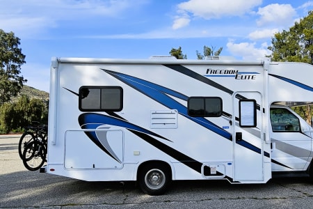 This is the incredibly popular Freedom Elite, a smaller Class C RV. At only 25' long and 8' wide, you can fit in most campground spots you can find around Texas and surrounding states, and even just slightly larger parking spaces. But don't let the size fool you because in this RV you will find everything you need to experience glamping in style.