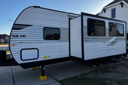 Very popular floor plan laid out with slide out for great interior space. It has a private master room with queen size bed, two bunk full size beds. Dinning can become a bed and one adult can sleep on comfortably. Sofa also can become a bed, although it better suited for children.