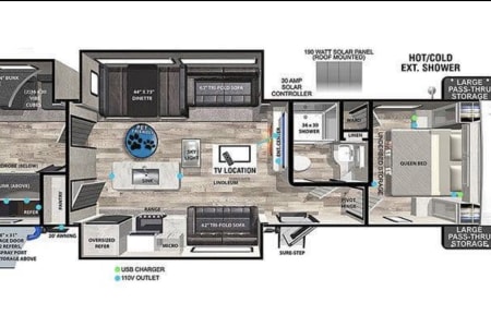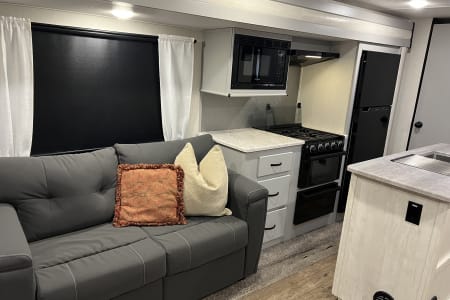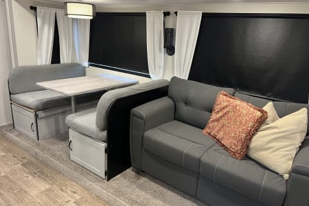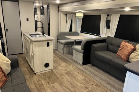 This is a 40 foot travel trailer with plenty of beds for the entire family.