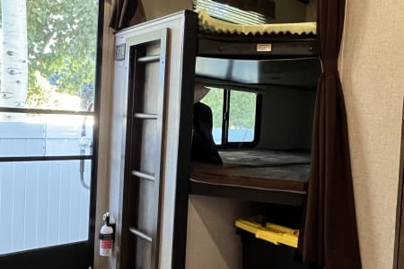 Two Slide-outs (Bedroom/Living Room). Queen Bed, 2- Bunk beds, 2 fold out beds.