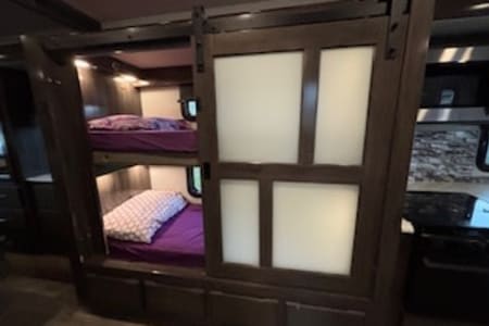 Spacious sleeping arrangements: Enjoy ample sleeping space with a king bed, a full bed, twin bunk beds, a convertible couch, and a convertible dinette.