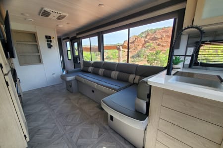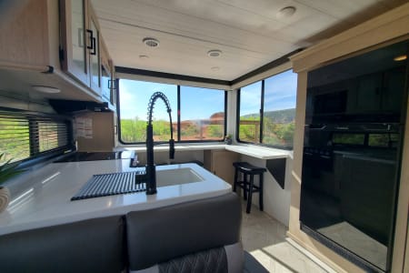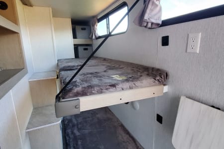 Brand new 2024 Salem 29view offers a unique camping experience for you and your family! This trailer offers 105 square feet of windows allowing the ultimate VIEW during camping. Open up the secret door to reveal two bunks, more windows and a workspace. This can be used for working, storage or sleeping guests. 6 people sleep comfortably in the spacious trailer thanks to a large pullout sofa, king size bed and two bunks. Other features include built in fireplace, 45 inch living room tv, bedroom TV, tankless water heater, large refrigerator and freezer, spacious walk in shower, outdoor refrigerator and cooktop and plenty of storage!