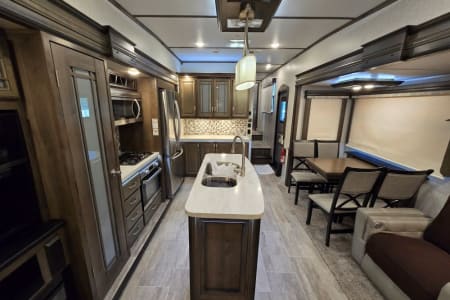 This unit requires a minimum of 50 amp service. No generator usage and NO Boondocking. This RV can sleep up to 5 adults. We can deliver this 5th wheel to you today! Rent this RV today and focus on the adventure, we got the rest!