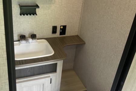 Prepare for your adventure with this beautiful, fully functional, mid-size travel trailer! This 2024 model is in pristine condition and we strive to provide an excellent camping experience by fully stocking with all your camping necessities and more! Not only is there a fully stocked kitchen but we also include general camping goods such as camping chairs, folding picnic table, 2-person inflatable kayak and more!