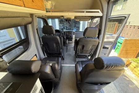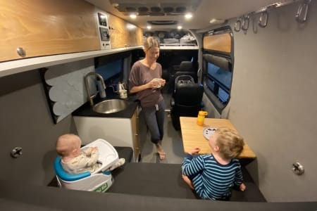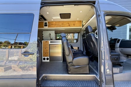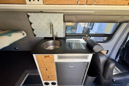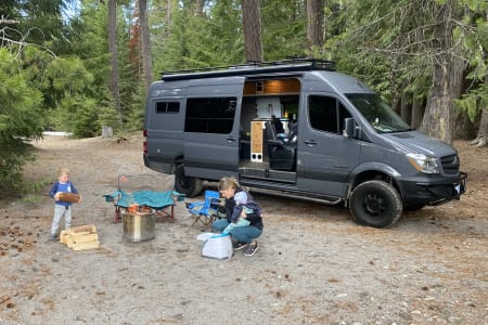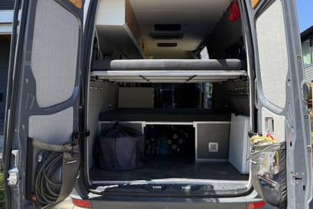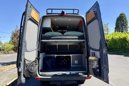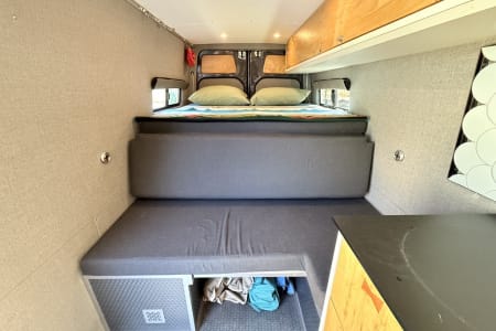 The folks at Outdoor Van provide a professional and clean build with streamlined systems for easy operation and navigation. Our van seats & sleeps 4 with two comfy beds (Queen + Full), so everyone wakes up stoked for the day’s adventure. The Queen sleeps length wise and sleeps tall people comfortably!