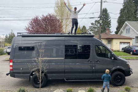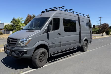 Looking for the ultimate way to explore the mountains, deserts, coastlines—or all three in one trip? Meet Bruce, our fully decked-out Mercedes Sprinter 170 4x4 built by the legends at Outside Van. He's not just a van—he’s a badass mountain beast ready to take you anywhere, anytime, in serious style.