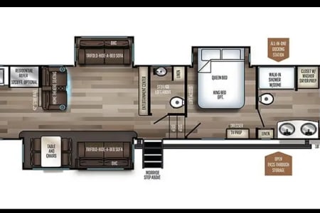 Make your next camping adventure unforgettable with this beautifully designed 2021 Forest River Sabre. Perfect for families, couples, or small groups, this fifth-wheel RV comfortably sleeps up to 6 people and combines high-end features with the cozy comforts of home.