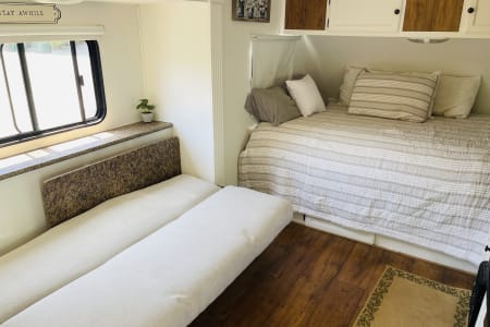 Our little glamper is the perfect way to enjoy the outdoors with all the comforts of home. Features include cozy beds - sleeps 4 comfortably, convertible dinette, and plenty of storage for your gear. Whether you're chasing sunsets or setting up near a peaceful lake, you'll enjoy modern amenities like a fully functional kitchenette, a private bathroom and shower, heated and A/C, and ample charging ports for your devices.