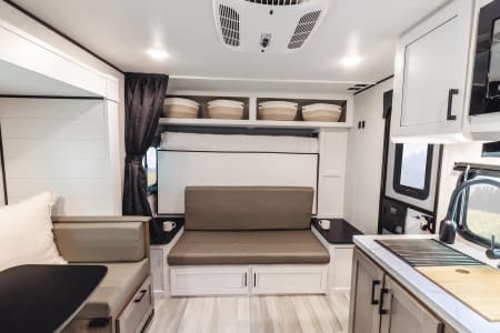 Dinette conversion (Size 70X42) – transforms easily into another sleeping space.