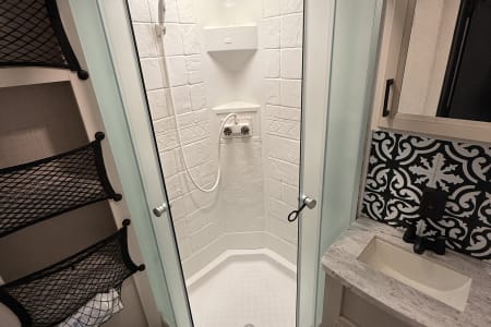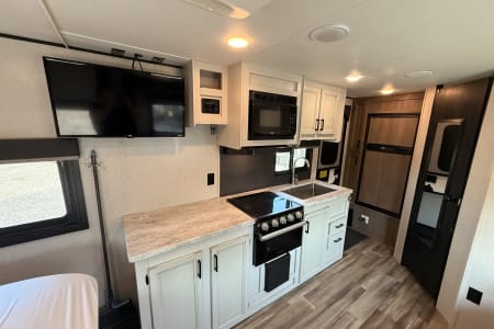 We've Got You Covered: We've stocked the camper with the essentials to make your trip planning easy. You'll find a coffee pot, toaster, pots and pans, basic cooking utensils, lighters, and even toilet paper with sanitation drops for the black tank. All necessary campground hookups (water hose, power cord, sewer hose) are included.