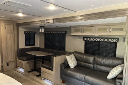 Camper for rent. We will deliver, set up and pick up. Nice clean camper. Sleeps up to 9 people. Queen size bed, couch folds into bed, table can make into bed and three bunks.