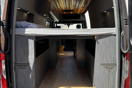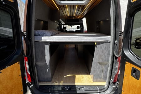 Are you looking for the Perfect and Style Campervan to visit national parks in? This Luxury Campervan is fully equipped for off-the-grid adventures with solar, air conditioner, hot and cold water (shower and sink) and sewage self contained. It's designed with king size bed, cassette toilet, shower and kitchen! The space also has interior fabs, ac, a heater and plenty of bedding.