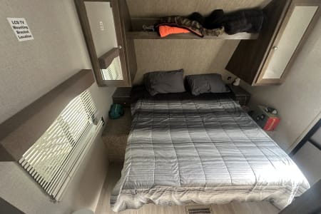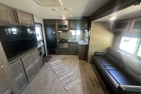 The awesome layout of this rear kitchen gives you tons of floor space you while still offering seating at the sofa and dinette. Very comfortable camping