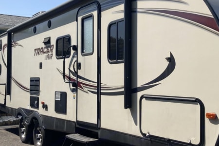 Say hello to Skye Tracer, our cozy, adventure-loving 32’ Forest River Tracer Air travel trailer, perfect for families, friends, or anyone looking to enjoy the outdoors without giving up the comforts of home. Let us set you up for success, we stock the essentials so you can focus on making memories, relaxing, and enjoying the outdoors!