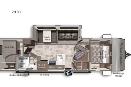 The Aspen Trail LE 29TB is a spacious and family-friendly travel trailer designed for ultimate comfort on the road. Featuring bunk beds, a well-equipped outdoor kitchen, and a cozy booth dinette, this unit seamlessly blends functionality with convenience. With a residential queen bed and a jack-knife sofa for added versatility, the Aspen Trail LE is perfect for those seeking memorable camping experiences. Ideal for RV consumers looking for a stylish and practical travel solution, this model offers everything you need for a comfortable getaway.
