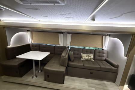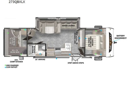 - Includes three bunks and a Jiffy sofa (for lounging or sleeping)