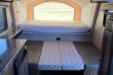 Small but Mighty! At just 3,510 lbs GVW, this camper is lightweight and easy to tow, yet packs a punch with tons of sleeping space and great amenities. Perfect for families and groups, Squatch III sleeps up to 6 with its double expandable hybrid bunk, a convertible dinette, and two additional bunks—all in a compact, easy-to-tow design.