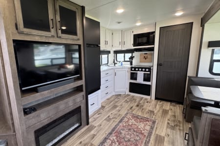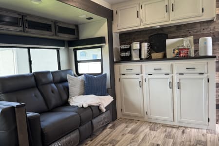 Experience our cozy but spacious, home away from home, luxury 33’ RV with 1 slide that sleeps 5. Perfect for small families (fur babies included) looking for a space to unplug and enjoy the simplicities of life.