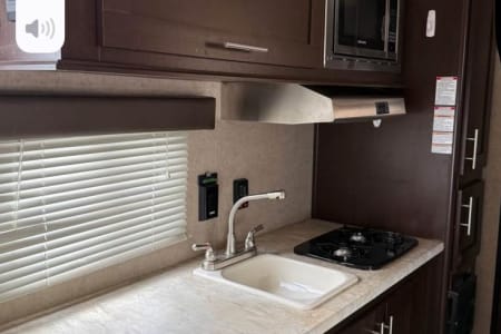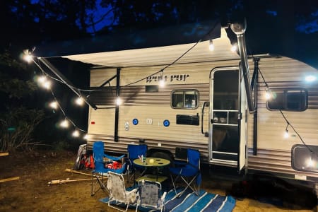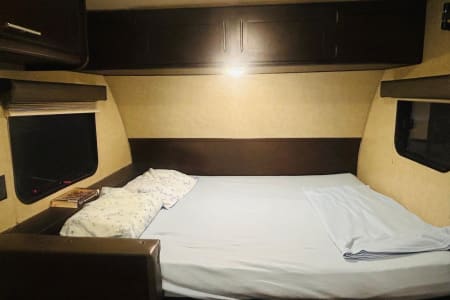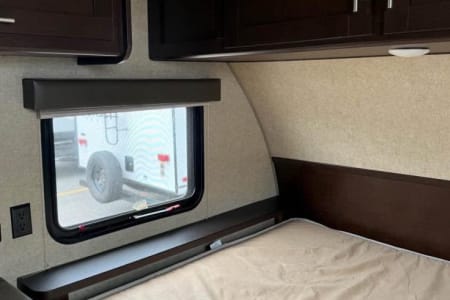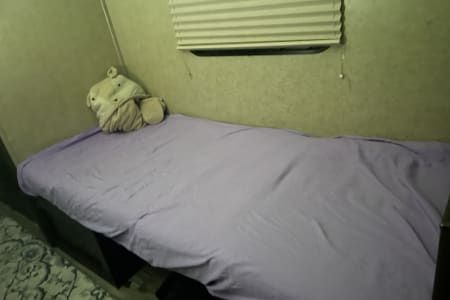 This spacious and lightweight family camper is great for traveling and exploring the great scenery within the country. It sleeps 5+ depending on your arrangement. There is a queen bed, the dining area converts into a twin bed and there is a bunk bed for 2. The camper is equipped with a refrigerator, microwave, Bluetooth connection, automatic awning, and a dining area (table and seating). The camper is equipped with all the basic necessities like utensils, pots/pans/cups, and linens. Lower bunk bed folds and allows for extra storage (which you can store your bike/s and/or the generator etc.).