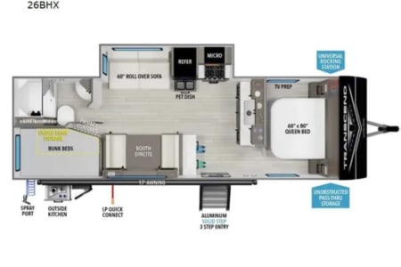 Meet Grace — your home away from home! This 2024 Grand Design Transcend Xplor 26BHX is perfect for family getaways, couples' escapes, or weekend adventures. Comfortably sleeps 8 with a queen bed, double bunks, and convertible dinette.Features include:Fully stocked kitchen with fridge, stove, microwave, and sinkCold A/C, hot shower, toilet, and bathroom sinkSmart TV for movie nightsSpacious slide-out for extra roomBluetooth stereo and indoor/outdoor speakers