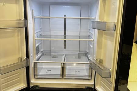 -Sleeps: up to 6 (with king bed + two tri‑fold sofas)