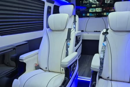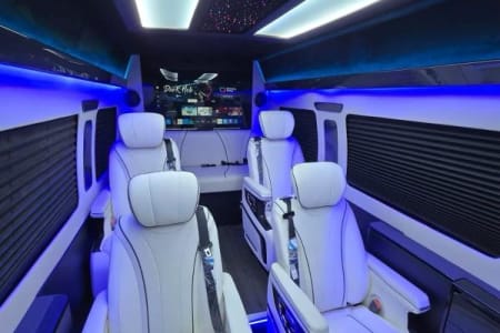 The spacious interior of the Presidential is truly remarkable. The elegant Maybach ceiling provides ample headroom, allowing passengers to stand and move about freely. It’s perfect for any occasion—whether configured for family travel or transformed into a luxurious limo for a night on the town.
