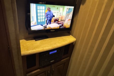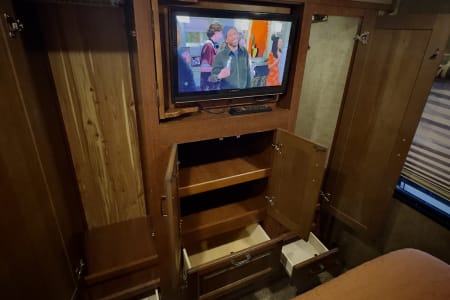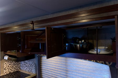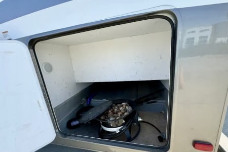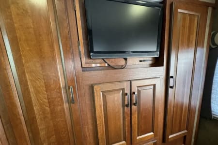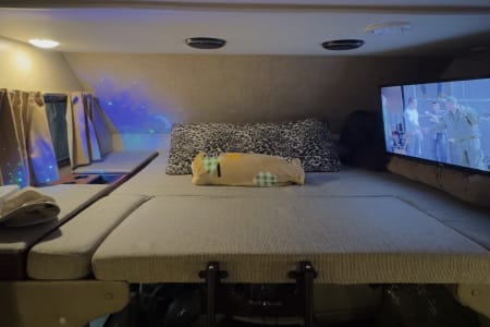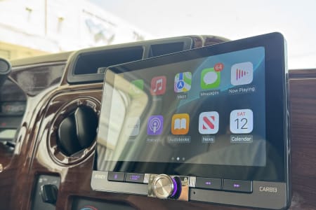 The RV is equipped with 5 Satellite TVs (including an outdoor TV), plus an 8inch entertainment touchscreen with Apple/Android CarPlay, 5 interior surround sound speakers , and as well as a switchable dual outdoor speaker system so loud it might piss off your neighbors eight camp sites over. (If you’re into that)