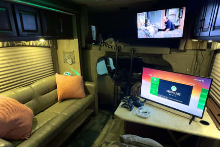 This Rv also includes multiple charging cables for all different types of devices, a Jbl speaker, and an Xbox 360 with some classic games with 4 controllers.