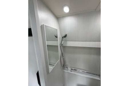 With generous water tanks, solar panels, lithium batteries, and a traditional porcelain toilet with a built-in black-water holding tank, you’re fully equipped for dry camping. Whether you're parked in the wild or at a scenic overlook, you can cook, clean, relax, and sleep without ever plugging in