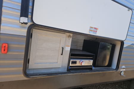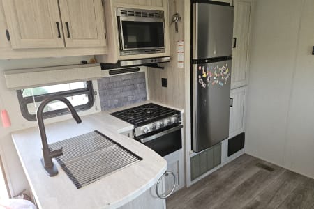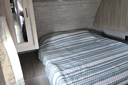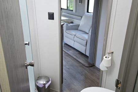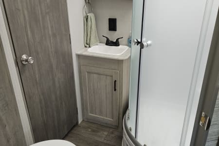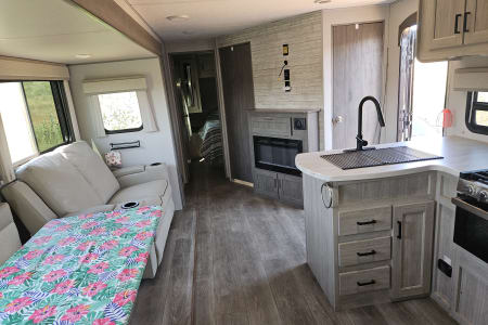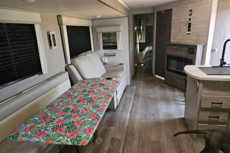 Step inside this beautiful 36-foot travel trailer and instantly feel at home. With a light, modern interior and thoughtful features, it’s perfect for family getaways, couples’ retreats, or group camping trips.