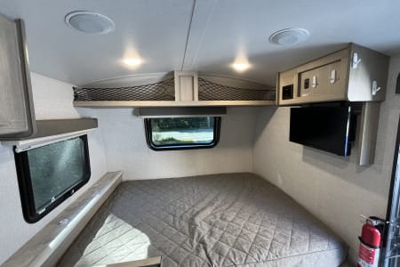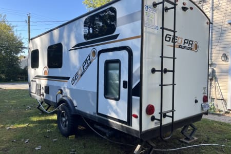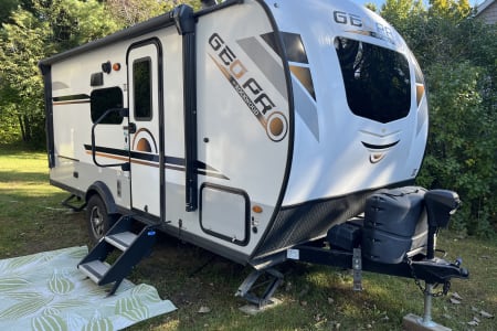 Our family GeoPro 19BH that already created many souvenirs is for rent. Everything you need to be comfortable under the same roof. Built strong and easy to pull, it has a double bed, fridge, microwave, shower, toilet and bunk beds.