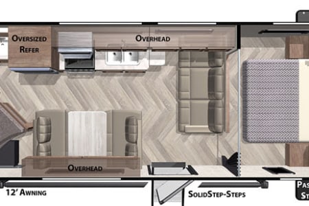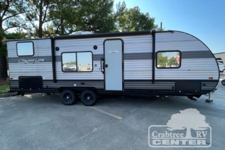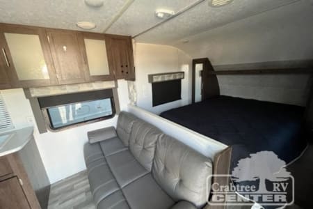 Double size bunk beds make this a fun travel trailer for the kids, so invite some friends to join them for a weekend getaway! You will have your own walk-around queen bed up front while your kids and their friends can sleep on the bunk beds, the sofa and the booth dinette after the furniture is easily set up for nighttime. Everyone will surely appreciate having access to the private toilet and shower/tub room with the bath sink just outside the door. This setup will allow someone to shower while another person is washing their face.