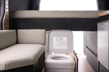 Perfect for couples or solo travelers, Van Wilder sleeps two comfortably on a plush memory foam queen bed. Inside, you’ll find everything you need to make van life easy and enjoyable: a fully equipped kitchenette with a stove, kitchen sink, coffee maker, air fryer, and all cooking essentials, plus a cozy dining setup with a slide-out table and benches that convert into an eating area.
