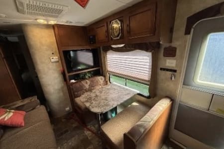 Enjoy a comfortable and spacious interior, with everything working just as it should. The water heats up quickly, and the propane tank makes cooking a breeze. A satellite-connected TV gives you access to channels anywhere, and it can also connect to campsite cable hookups if available.