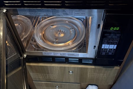 - Kitchen includes a sink, refrigerator with freezer, built-in propane stove, convection microwave and ample storage drawers / cabinets with all cooking utensils etc. included.