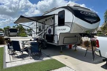 This Cougar’s smart floorplan means everyone has their own space. The bunkhouse is ideal for kids or guests, while the private master offers quiet comfort after a day of exploring. The living area slide adds room to stretch out, and the sleeper sofa gives you even more sleeping options.