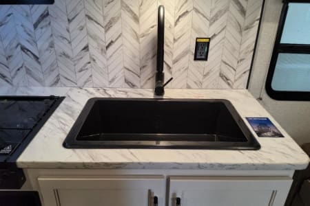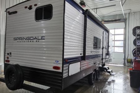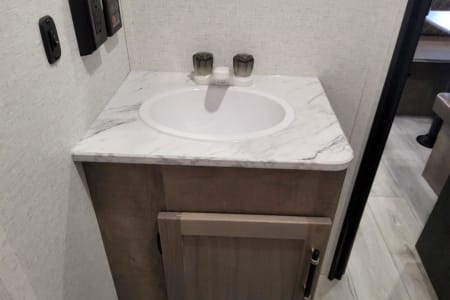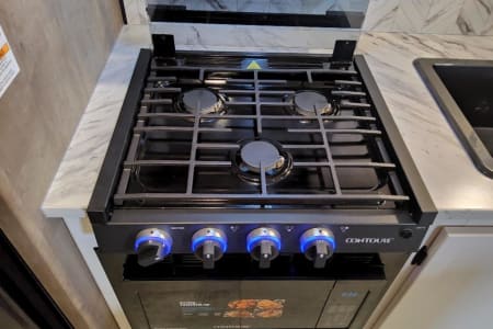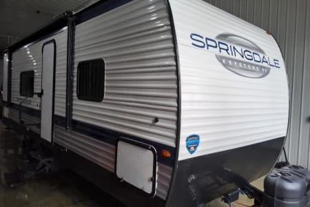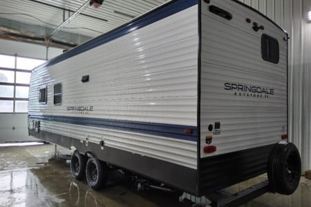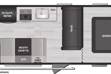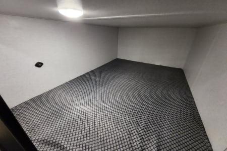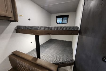 Bring the whole gang and explore with this bunkhouse travel trailer in tow! There is sleeping for up to 10 with double-size bunk beds, a queen bed up front, as well as a sofa and booth dinette that can accommodate more when reconfigured at night. You will easily be able to create meals to enjoy while camping inside with the three-burner range and a 10 cu. ft. 12V refrigerator. Overhead storage is available above the stove and sink and along the opposite side. There is also a front pass-through for housing all of your outdoor gear, as well as additional outside storage beneath the bunk beds. The 12' power awning will also provide more living space and outdoor protection from the sun and/or rain.