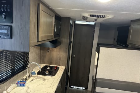 Step into comfort and style with this beautifully maintained 20-foot travel trailer, designed to feel like a home on wheels. With a bright, clean interior and a smart layout, it offers all the modern amenities you need while keeping a warm, inviting atmosphere. Enjoy cooking in the well-equipped kitchen, relaxing in the cozy seating area, or unwinding after a long day in the comfortable sleeping space.