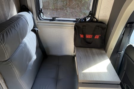 Adventure-ready features. Passengers can lounge in their bench seats.