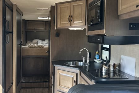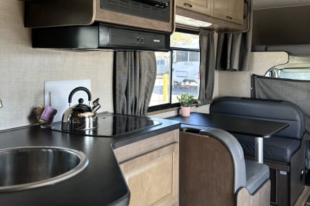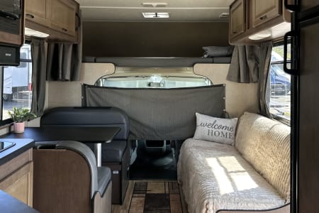 Discover the freedom of the open road with our spacious and easy-to-drive Class C RV — perfect for family vacations, road trips, and weekend getaways. Key Features: • About 30 ft long – easy to park at campgrounds • Sleeps up to 7 people (queen bed, overhead bunk, sofa bed, and convertible dinette) • Fully equipped kitchen: stove, refrigerator with freezer, microwave, pots, pans, dishes, and utensils • Bathroom with shower and toilet • Air conditioning, heating, generator, and water heater • Plenty of storage space for your gear Perfect for: • Family adventures • National & State Park trips • Road trips and weekend escapes