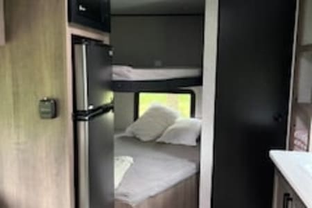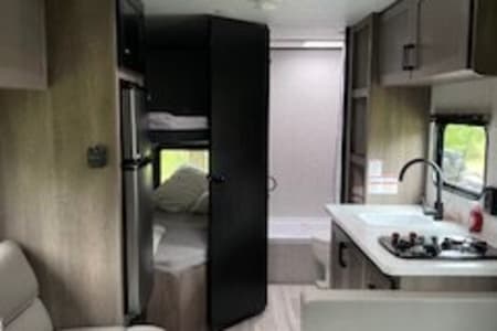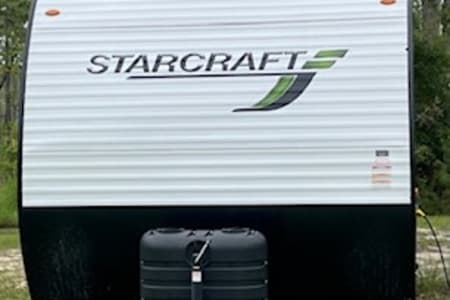 This is a 2025 brand new 27' Starcraft Autumn Ridge bumper pull camper. Open floor plan with a full/double bed with bunk beds at the other end. Sofa will also let out into a small bed.